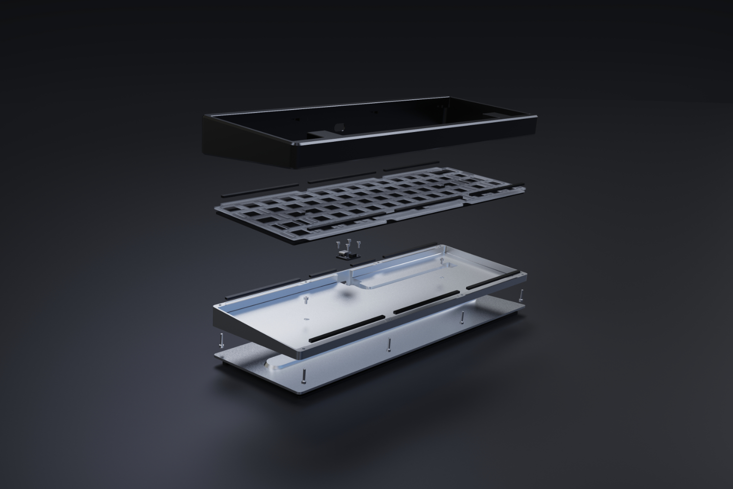 The Pneuma makes use of slow rebounding gaskets. Not only do these gaskets absorb vibrations between the plate and case but it also acts like a shock dampener for the plate to remove the harsh rebound you experience with other gasket materials.